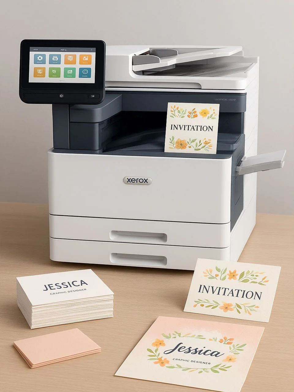 Finishing & xử lý sau in: để có sản phẩm cao cấp (card dày, cán mờ/bóng, bế góc bo), bạn có thể cần thiết bị finishing chuyên dụng (laminator, cutter, corner rounder, UV coating). Máy production như Ricoh thường có nhiều module finishing hơn; MFP như Xerox có finisher văn phòng (staple/booklet) nhưng giới hạn gsm khi ghim/booklet.