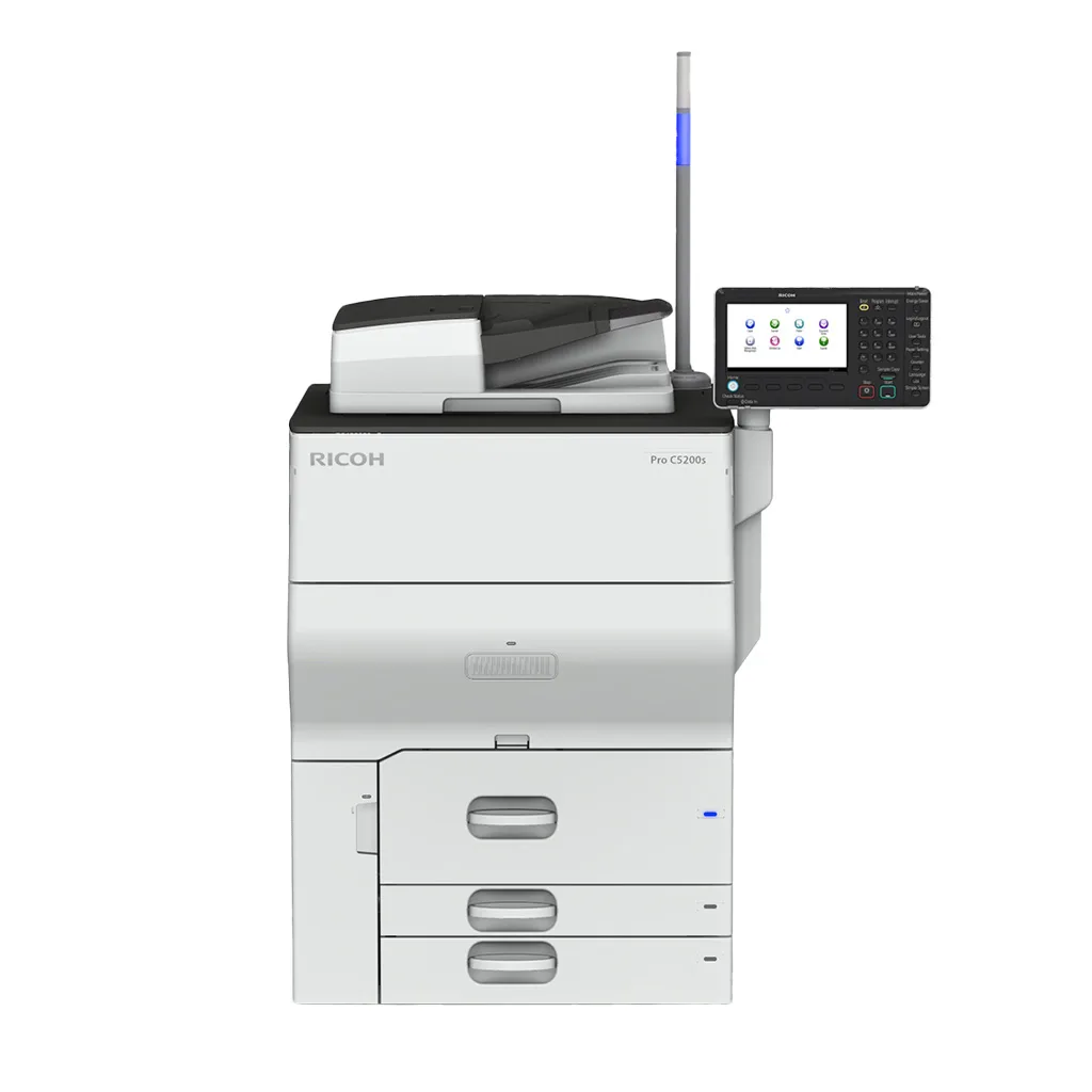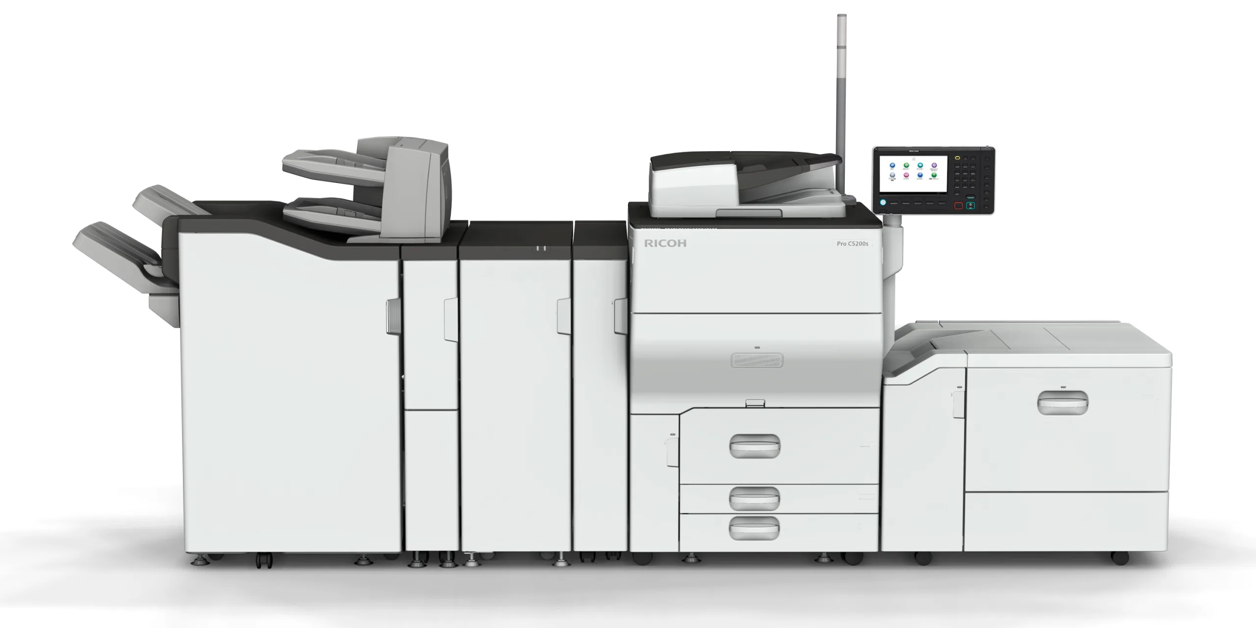 Ricoh Pro C5200s là một máy in/photocopy dạng production cut-sheet hướng tới các xưởng in nhỏ-vừa, trung tâm in nội bộ và các doanh nghiệp cần in màu chất lượng cao trên nhiều loại vật liệu (bao gồm cả giấy dày đến khoảng 300–360 g/m² tùy khay cấu hình). Máy cân bằng giữa tốc độ sản xuất, quản lý màu chính xác và khả năng xử lý media đa dạng, khiến nó trở thành lựa chọn mạnh cho short-run production (name-cards, thiệp, catalogue cỡ nhỏ, poster ngắn hạn).