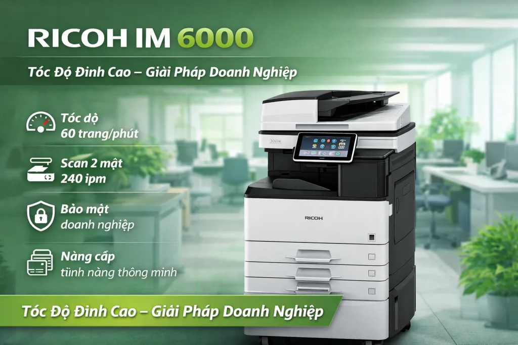 Ricoh IM 6000 là dòng máy photocopy đa chức năng A3 trắng đen cao cấp nhất trong series IM, hướng đến: