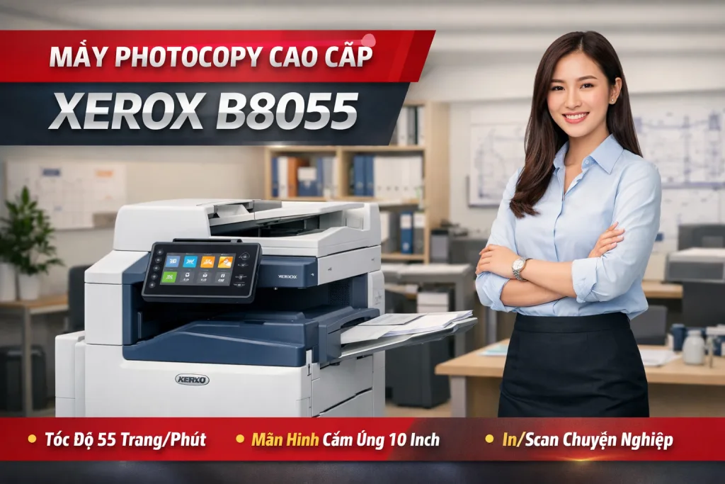 Dưới đây là bài mô tả chi tiết, sát thực tế kỹ thuật và vận hành của máy photocopy Xerox B8055 (AltaLink B8055) — phù hợp để bạn dùng tư vấn khách thuê/mua máy: